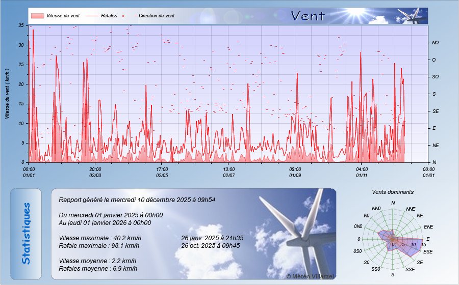 Attention, les données météo publiées sur ce site sont issues d'une station météo personnelle et sont données qu'à titre indicatif, elles ne peuvent en aucun cas être utilisées pour garantir la protection des personnes ou de biens quelconques.